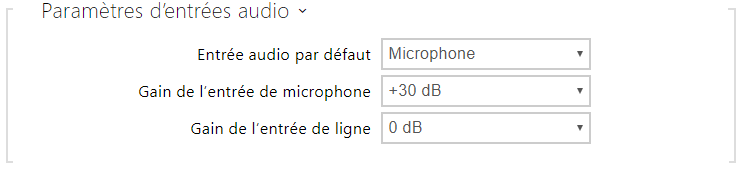 - Entrée Audio par défaut – définissez l'entrée audio par défaut (microphone, entrée de ligne ou entrée de module audio) à utiliser pour les appels téléphoniques et la diffusion audio.