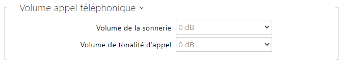 - Volume de tonalité d’appel – réglez le volume des tonalités de numérotation, de sonnerie et d'occupation. Ce paramètre ne sera pas appliqué si les tonalités de rappel sont générées de manière externe. La valeur est relative au volume principal.
