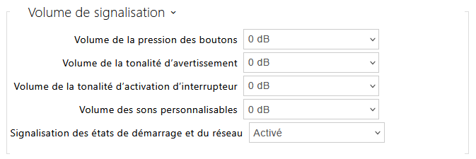 - Signalisation des états de démarrage et du réseau – Sélectionne le mode de signalisation sonore du démarrage de l'application et de l'acquisition/perte de l'adresse IP.