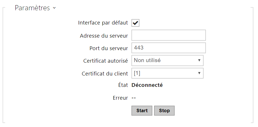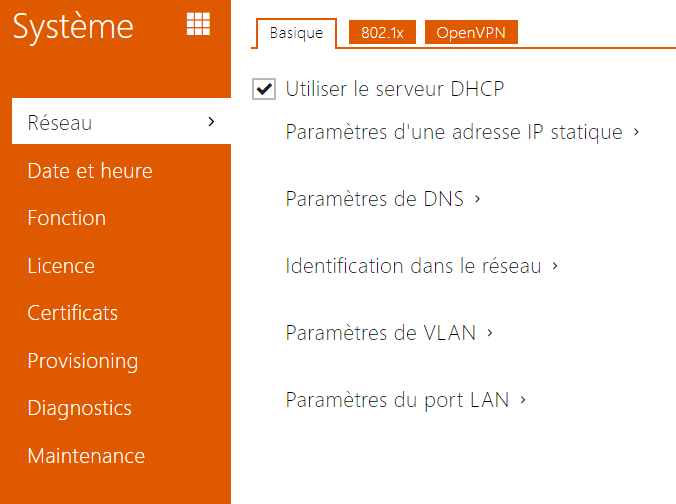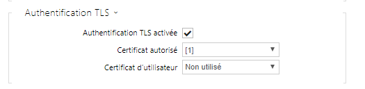 - Authentification TLS activée – activez l’authentification de l’appareil du réseau via le protocole 802.1x EAP-MD5. Si votre réseau ne supporte pas le 802.1x, n’activez pas cette fonction. Si vous le faites, l'interphone deviendra inaccessible.