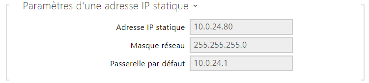 - Adresse IP statique – l'Adresse IP statique de l’appareil est utilisée selon les paramètres mentionnés ci-dessous si le paramètre Utiliser le serveur DHCP est désactivé.