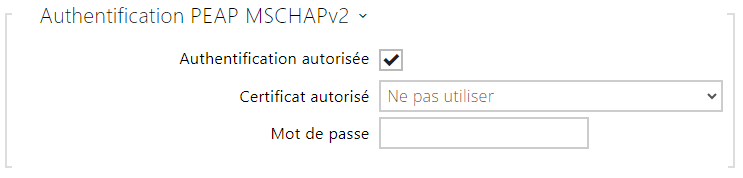 - Mot de passe – utilisé pour l’authentification à l’aide de la méthode PEAP MSCHAPv2.