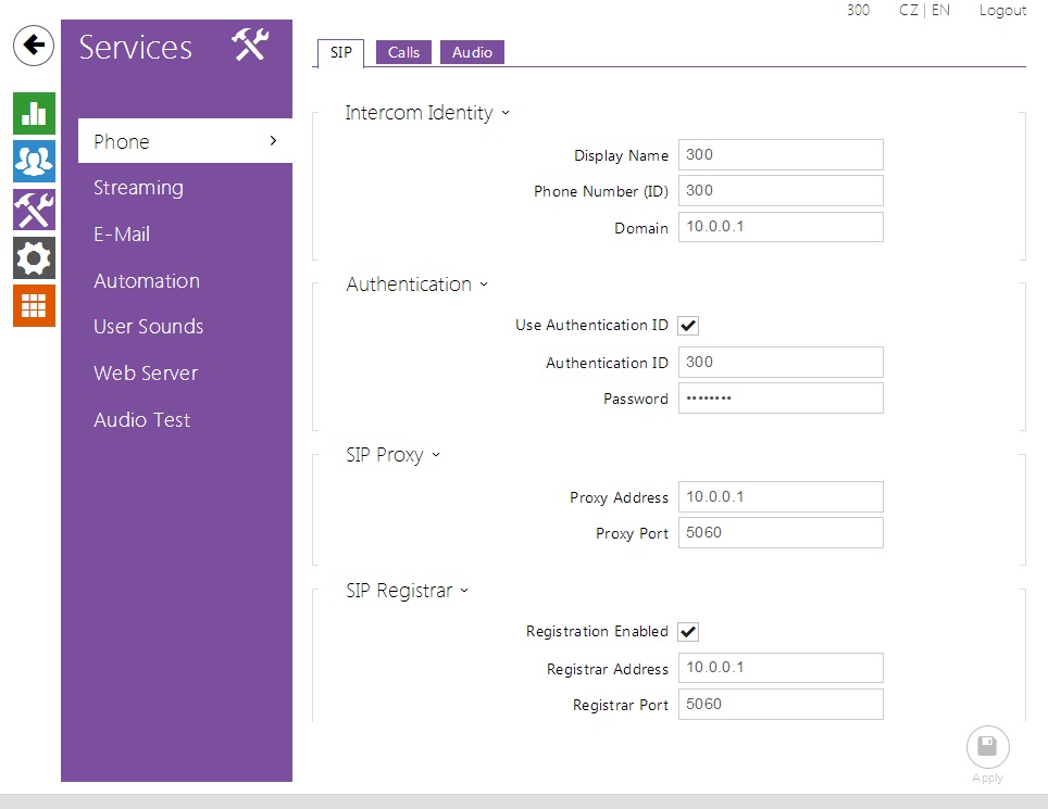 Now in both cases 2N IP intercom is accessible under 300 phone number and it can call any device registered at the Alcatel OXE.