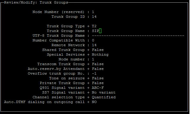 - Create Trunk group, Type T2 - MINI SIP or SIP