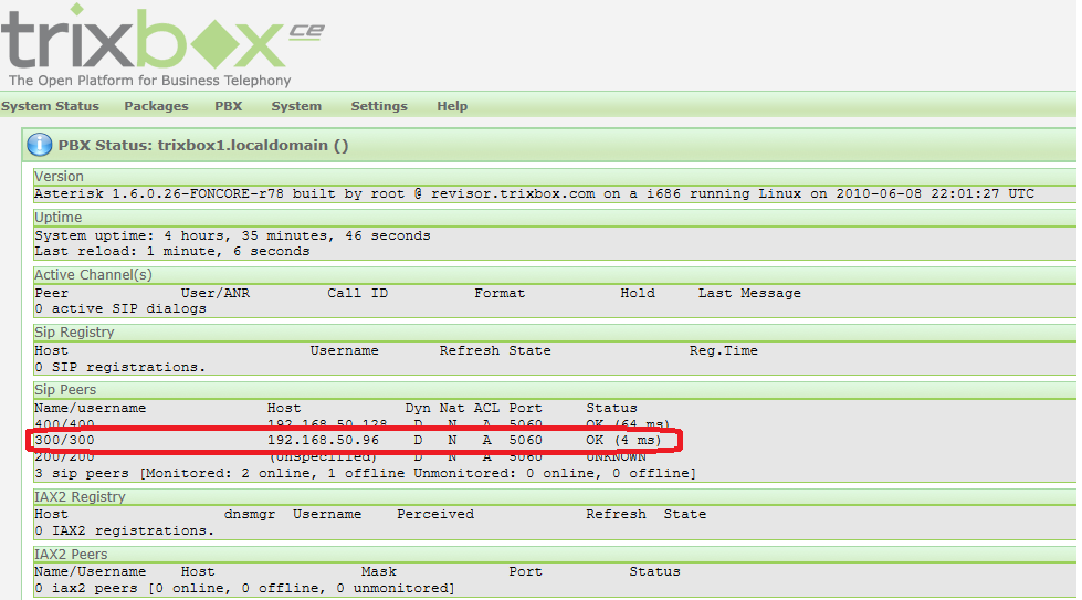 7. Now all is done. In order to check if you have been successful, you can go on side of the Asterisk IP to "PBX" -> "PBX status" (Pic. 8), (Pic. 9).