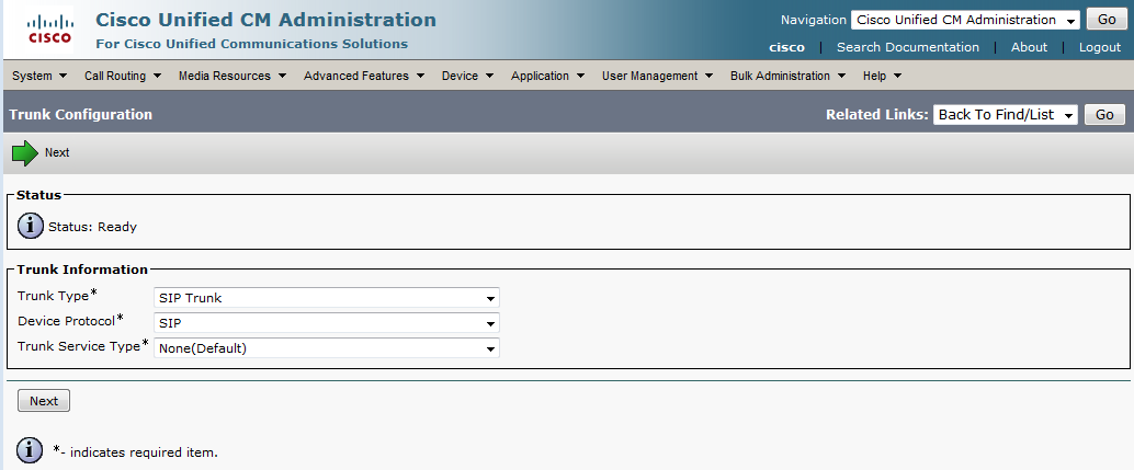 Go to section "Device->Trunk", set parameters regarding the picture below and click on "Next".