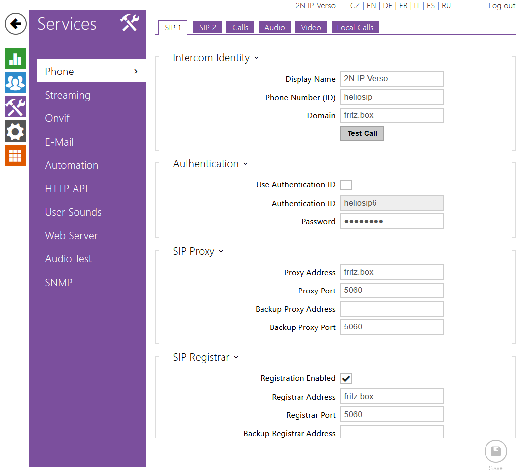 | FRITZ!Box 7490 | FRITZ!Fon C4 | 2N IP Intercom | Registration | Calls | Secure RTP (SRTP) |
