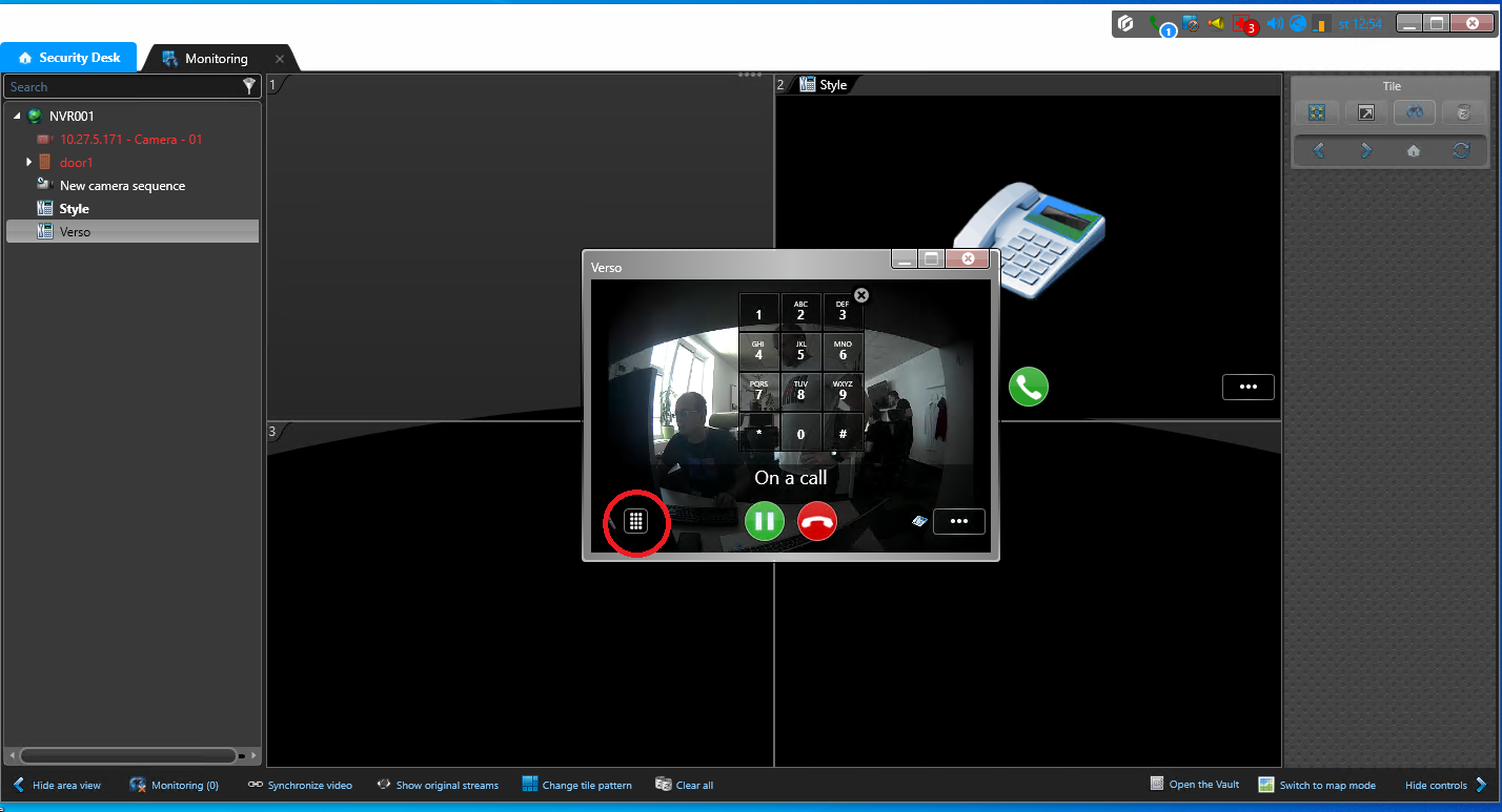 During the call, the DTMF signs for opening can be entered on a numeric keypad. To open it, click on the keypad pictogram.