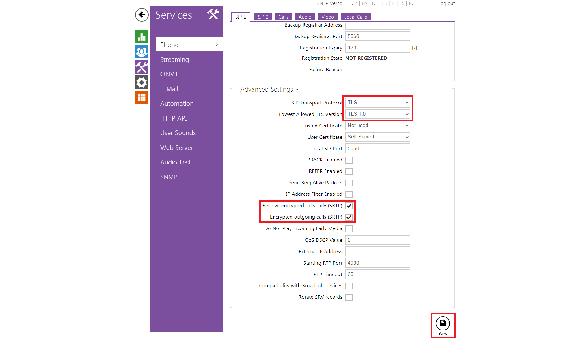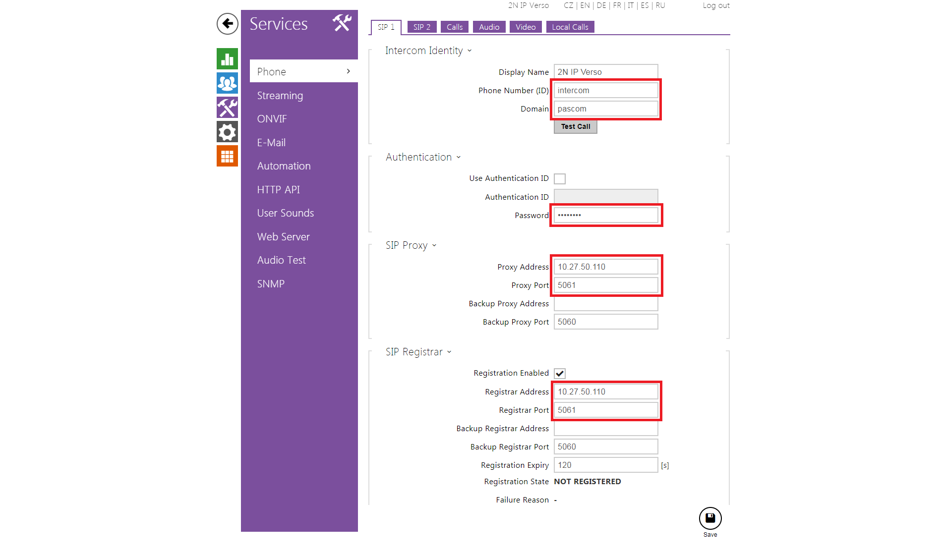 | Pascom | 2N IP Intercom | Registrations | Calls | Secure RTP (SRTP) |