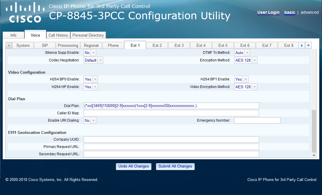 Cisco IP Phone 8845-3CPP settings