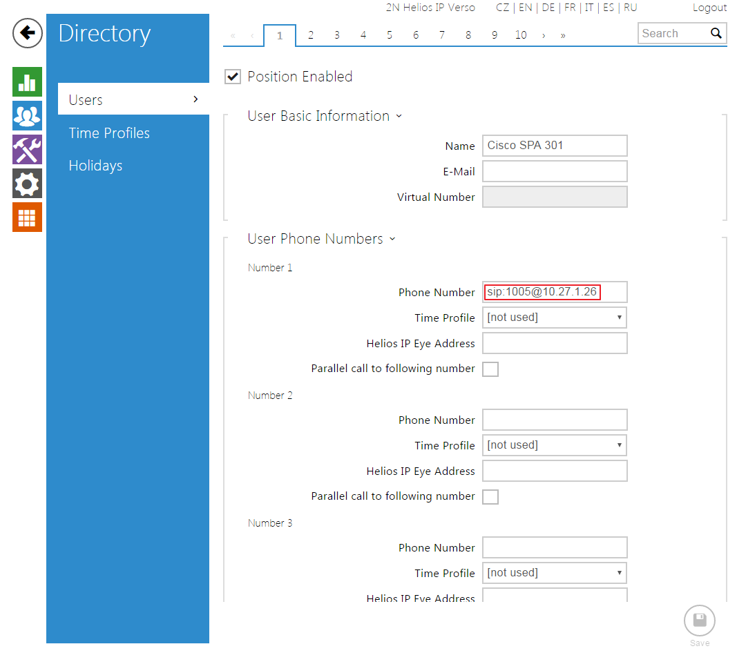 | Cisco SPA 301 | 2N IP Intercom | Direct Call |