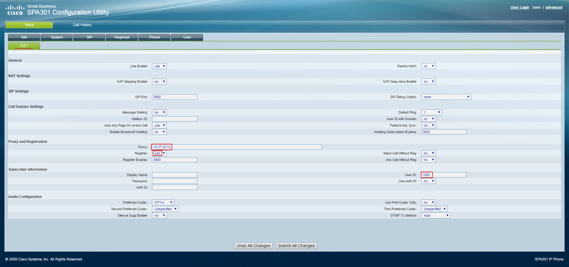 Phone web page | Cisco SPA 301 | |