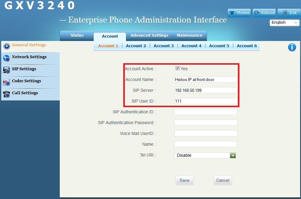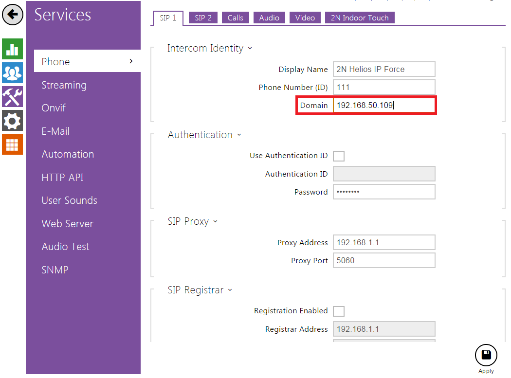 2N IP Intercom and GXV3240. Therefore set the IP address of the intercom into the "SIP Server" field as shown in the picture below.