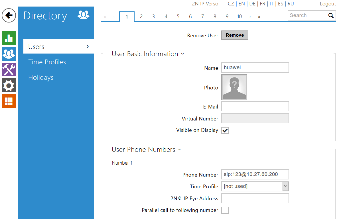 | Huawei eSpace 8950 | 2N IP Intercom | Direct Call | Netstar | Audio | Video | Switch Control | Video Preview | Secure RTP (SRTP) |