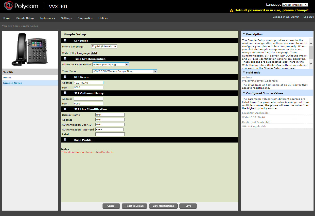 Phone web page | Polycom VVX 401 | |