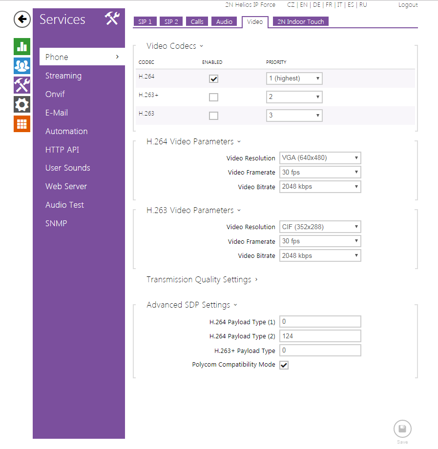 | Polycom VVX 601 | 2N IP Intercom | Direct Call | Netstar | Audio | Video | Switch Control | Video Preview | Call Completed Elsewhere |