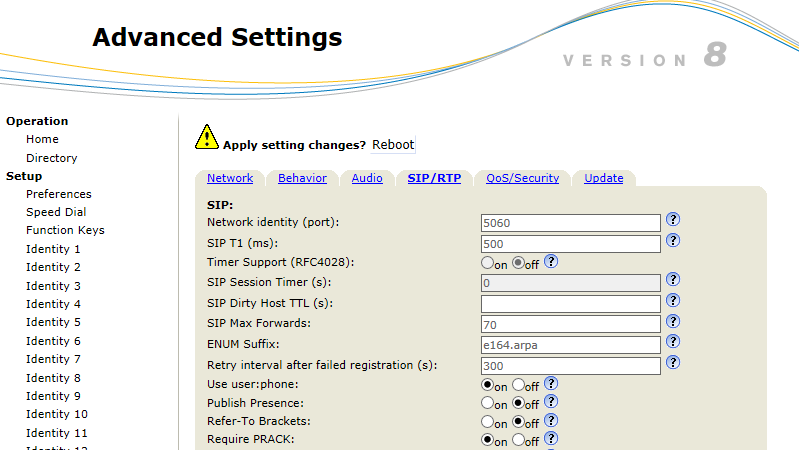 After you will finish the configuration, please reboot the phone, then all the changes will apply.