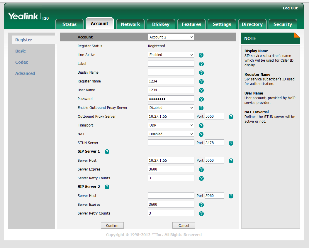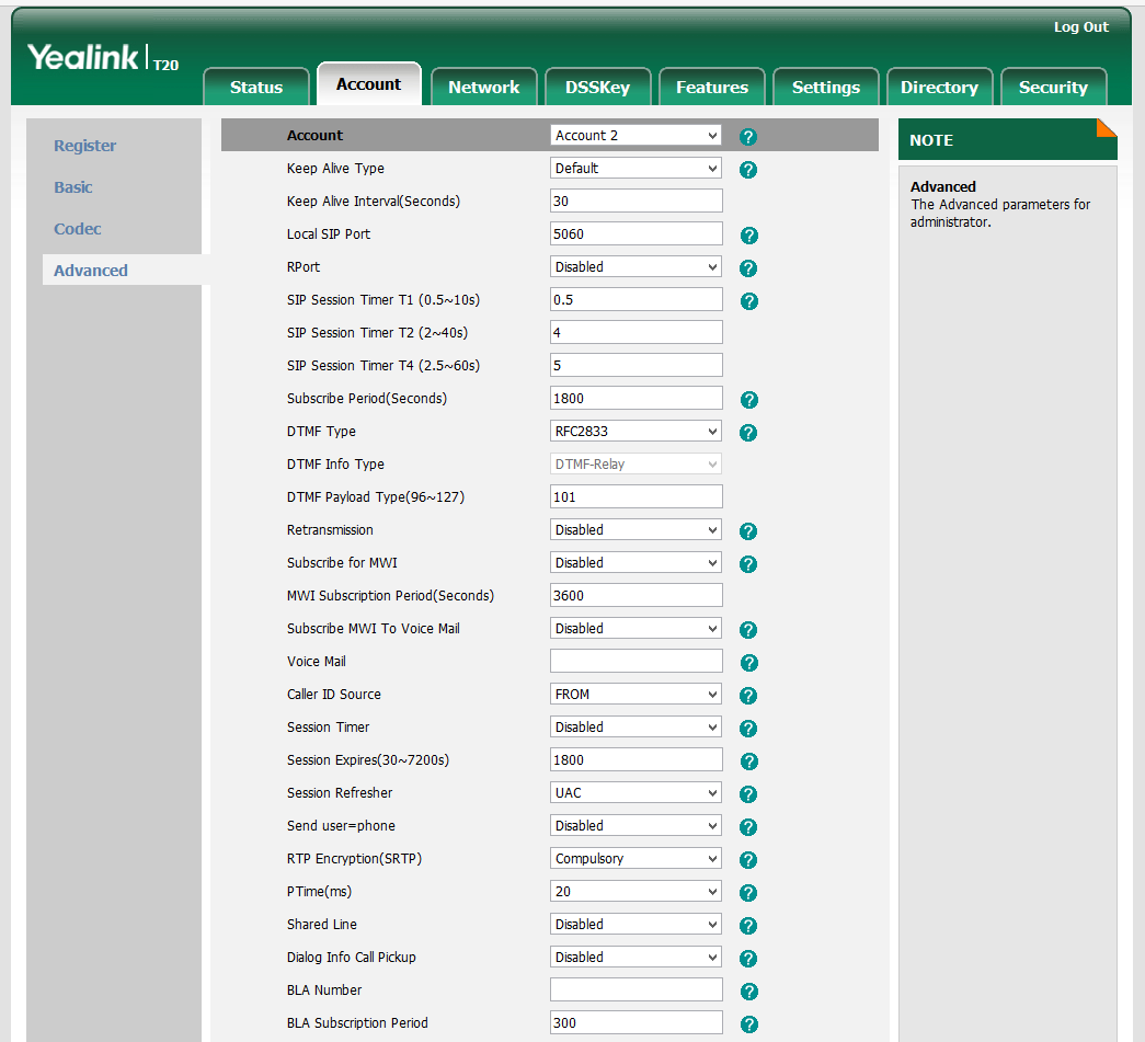 | Phone web page | Yealink T20P |