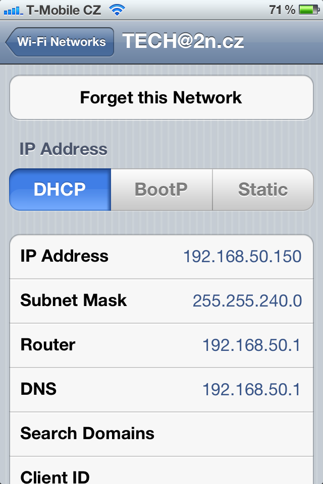 Setting -> Wi-Fi. In details of given network there are IP address which was assign to you.