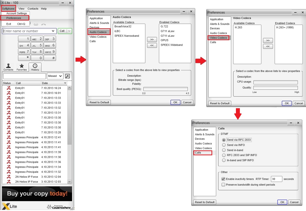 - go to X–Lite Softphone / Preferences and set the parameters according to picture bellow