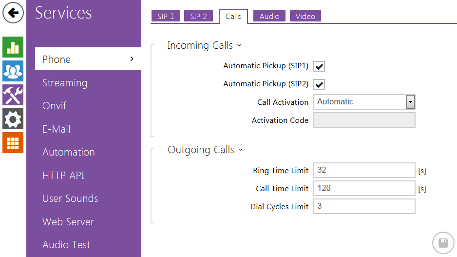 - it is also good to check the behaviour the 2N IP Intercom settings for incoming calls (Service / Phone / Calls).