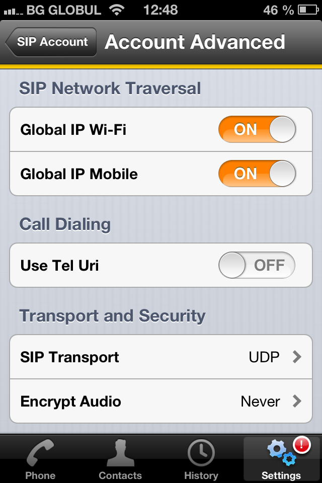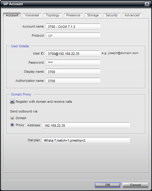 Settings with SIP proxy