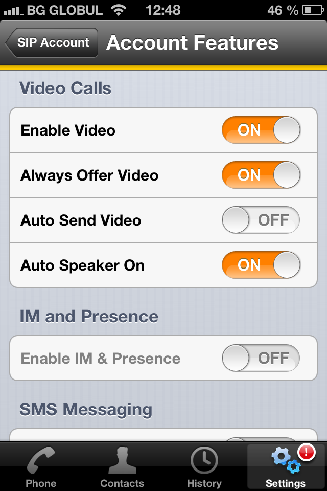 Download Bria application from App Store (iOS) or Google Play (Android) and install it. Please do not forget to buy also Video license for Bria application if you want to make video calls. Then run the application and fill in information which is necessary for correct registration.