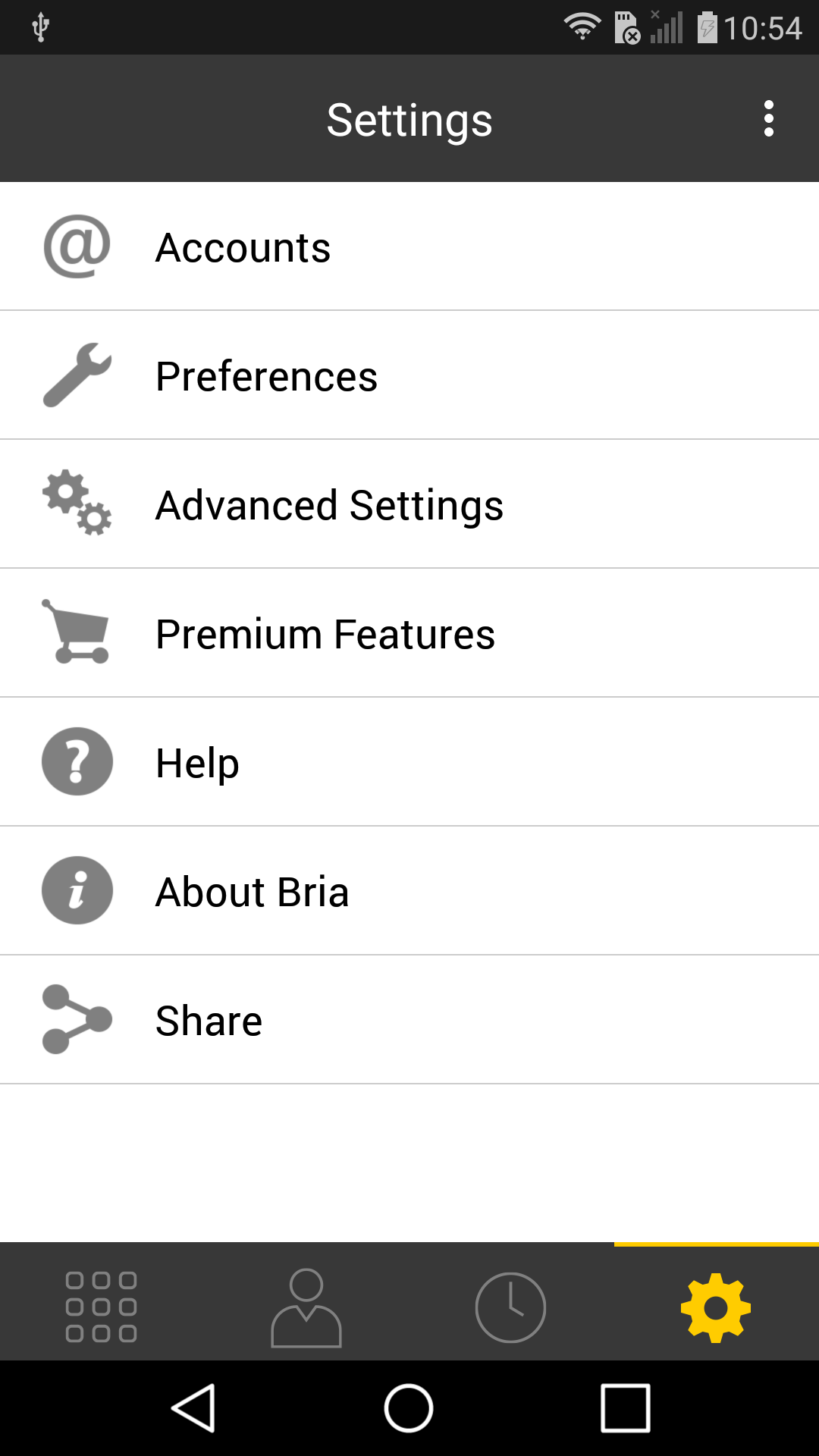 To set up account in Counter-Path Bria for your SIP proxy go to Settings (cogwheel button) / Accounts