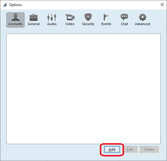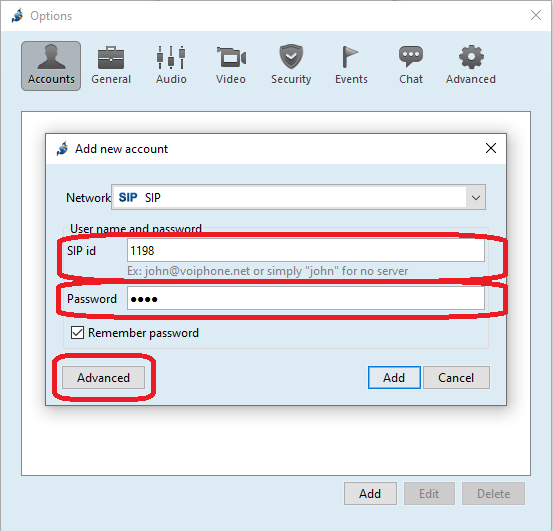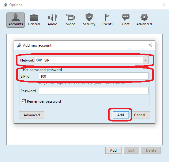 To connect your Jitsi application to SIP proxy (or PBX) SIP account must be created first. In Tools / Options chose Add to create new account.