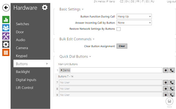 To associate the button created with the relay go to Hardware/Door/Door and assign the switch.