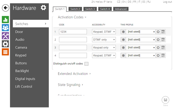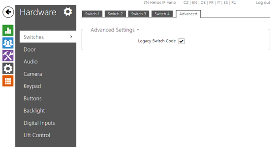 To configure the switch, go to Hardware/Switches/Switch 1 menu and complete the following fields: