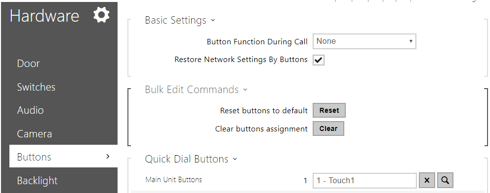 - control the opening of the door during an active call: NO, button in the touch device controls an output of the home automation system.