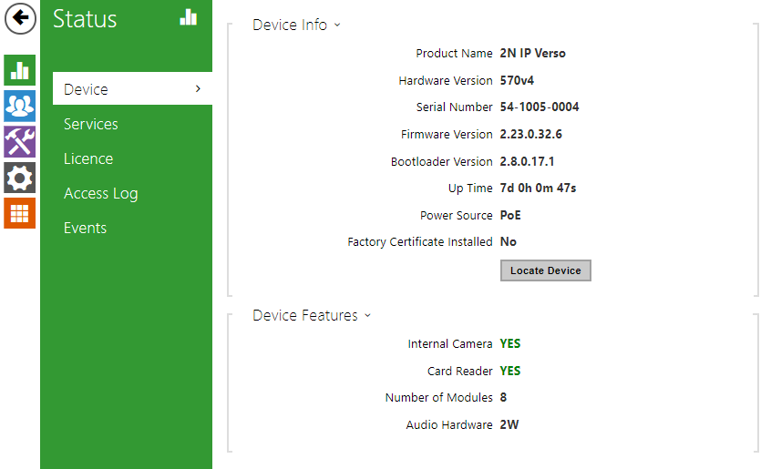 The 2N® IP Verso SIP Door Station is an SIP Door Station solution with an integrated video camera for monitoring door activity. Here follows settings to apply to the 2N IP intercom door station to work properly with Thinknx PBX. It applies to 2N firmware version 2.10.0 (2015). The following features are supported: