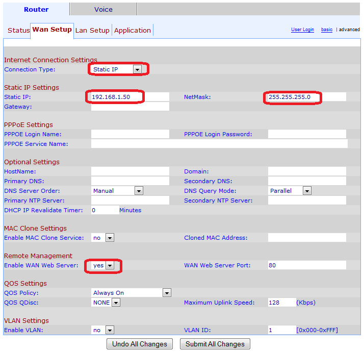 Setting up web server and WAN port: