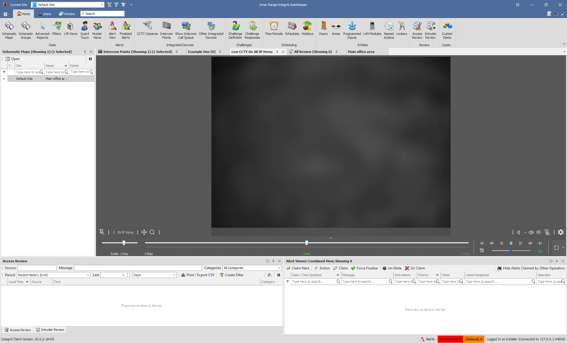 Review - If generating intercom events for the Intercom categories is enabled in the Device Properties then all changes to device state will result in Review being generated as with other Intercom events and alarms. These Review Records can be viewed in the CCTV/Integration Review window or can be used to trigger another event to happen in the system.