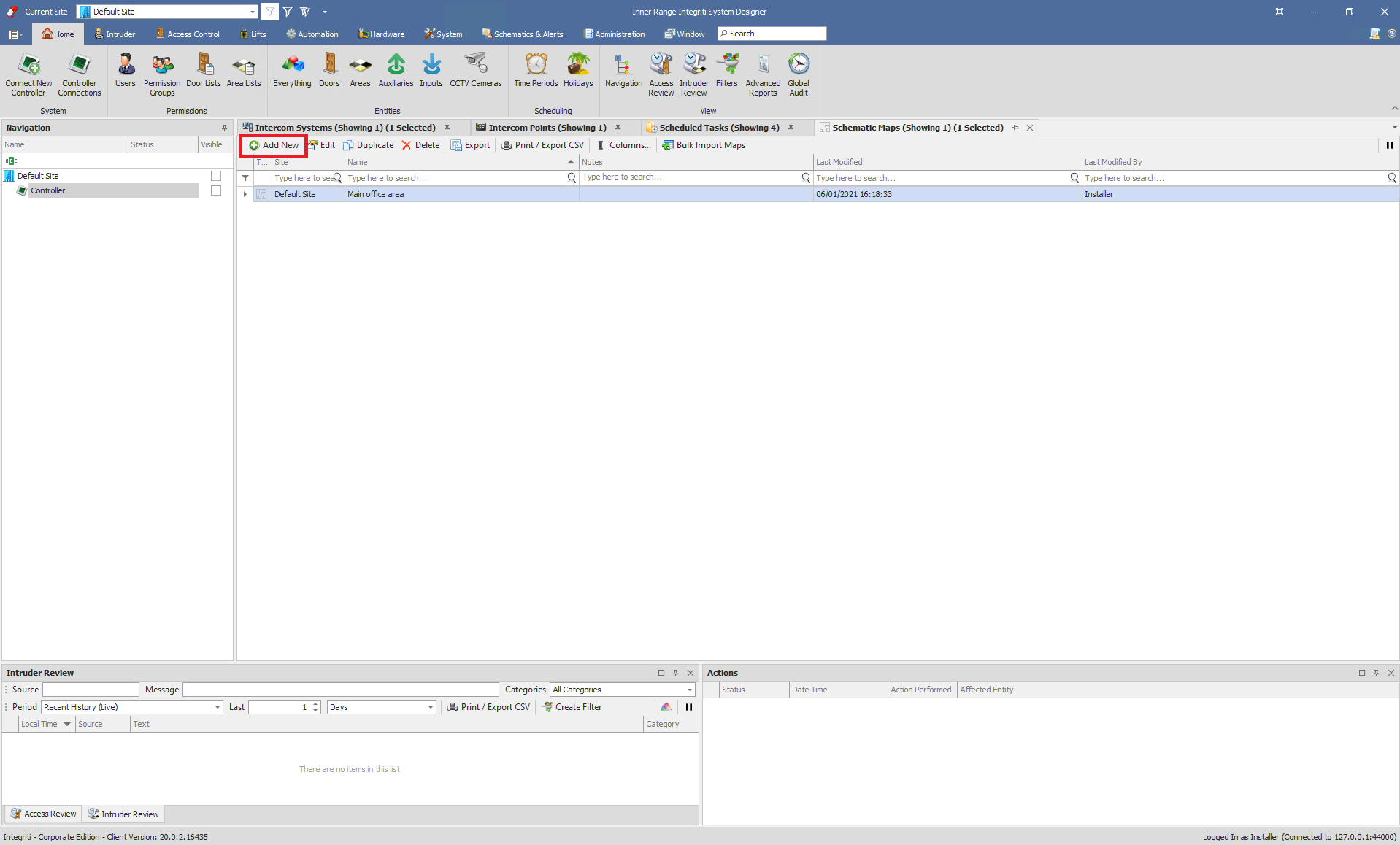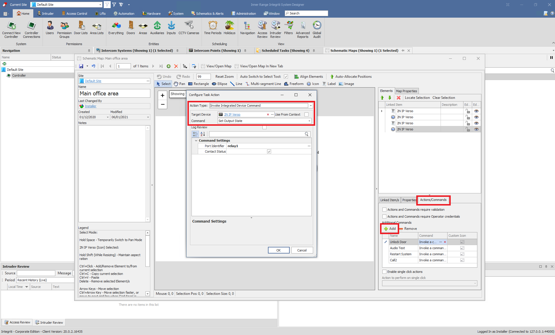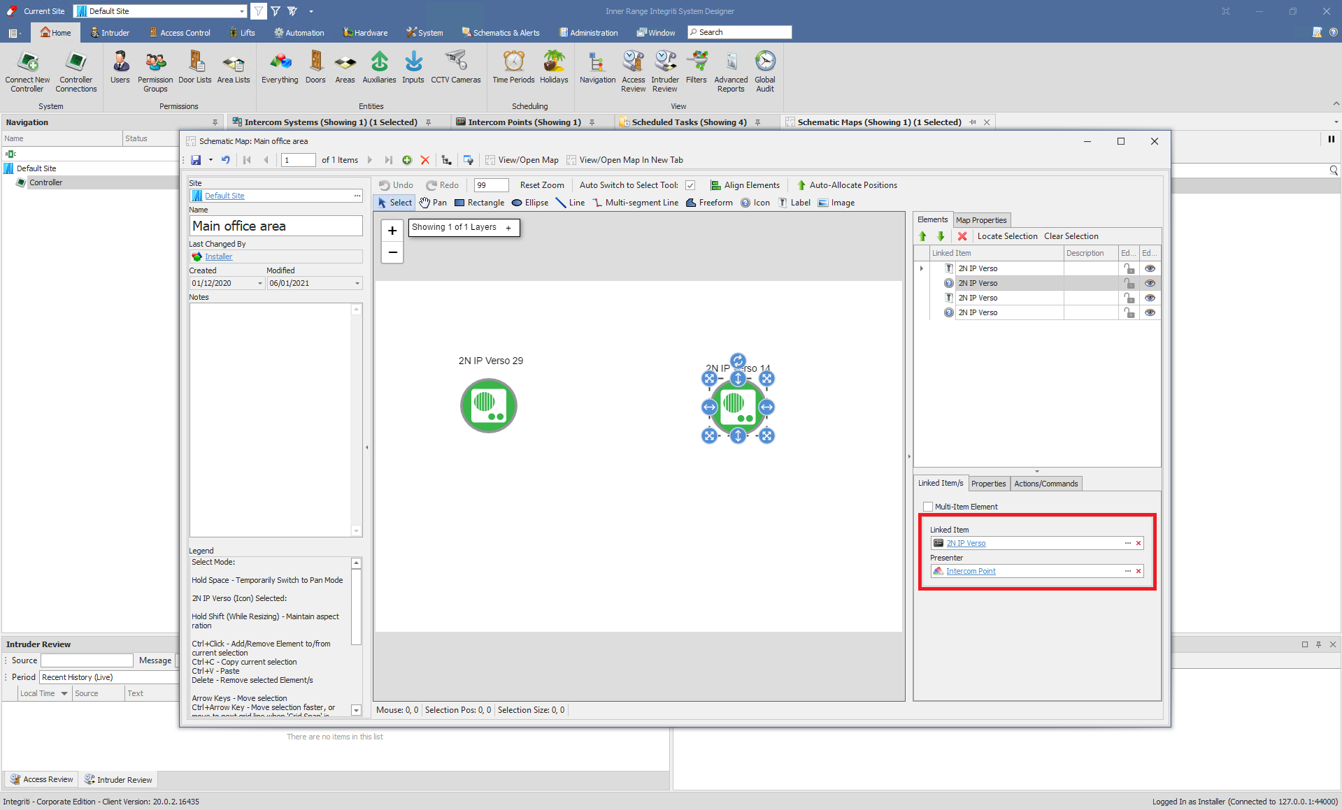 Add new Schematic Maps and add your intercoms points. You can add some lables or icons. Now set parameters: "Linked Item" - your intercom and "Presenter" - your intercom point.