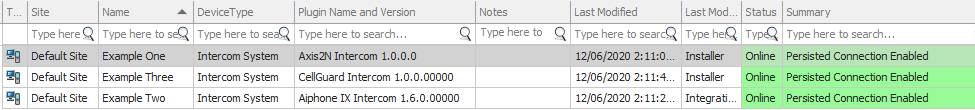 The current Intercom point state can be viewed from the following locations: Intercom point List - From the Intercom point list in Integriti, the Status and Summary columns give information on each Intercom point’s current state. Status provides an overview of the intercom’s current status, while summary can give more information specific to each integration. This can include intercom alarms, call state and several other useful details, dependent on the specific integration.