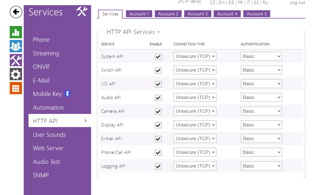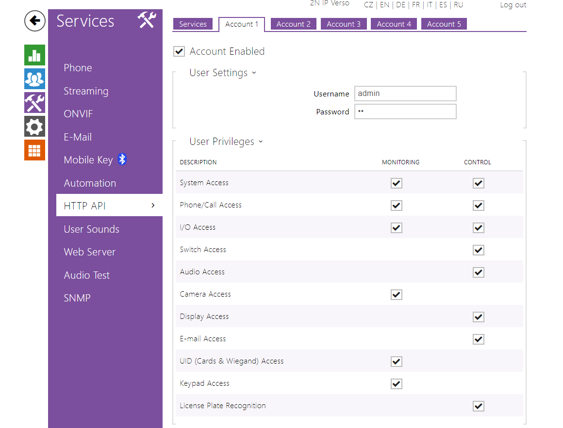 Services – HTTP API - Account 1