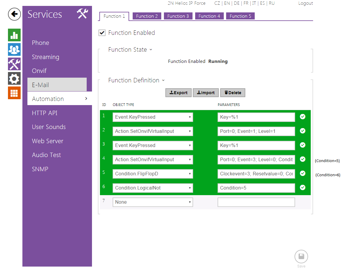 | Aimetis Symphony | 2N IP Intercom Version | Scan device | Video from 2N IP Intercom | Audio from 2N IP Intercom | Audio to 2N IP Intercom | Switch control | Events from 2N IP Intercom |
