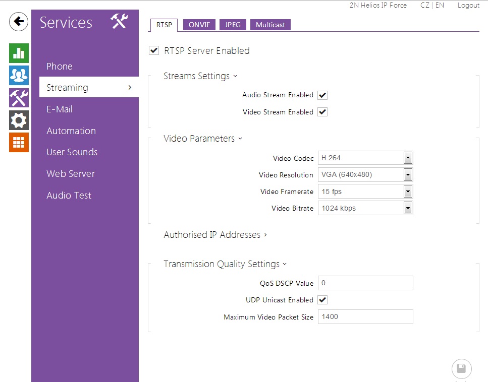 2N IP Intercom Settings