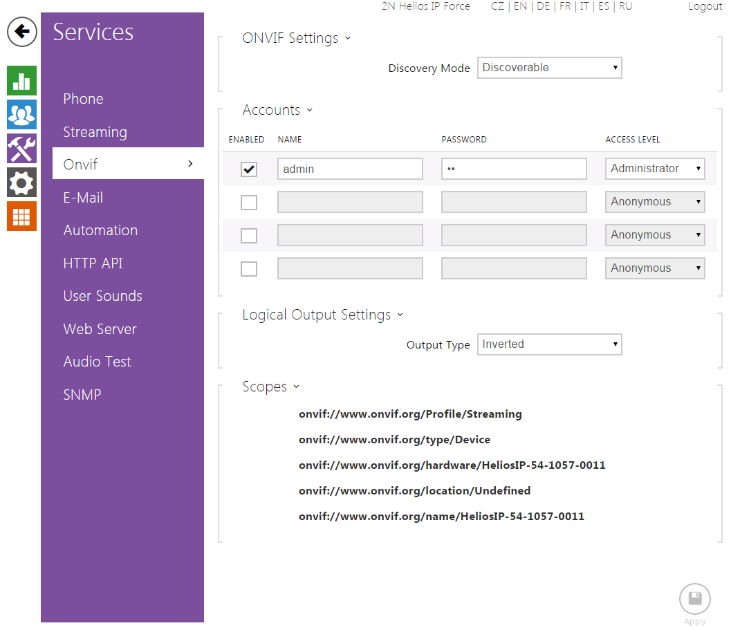 2N IP Intercom Settings
