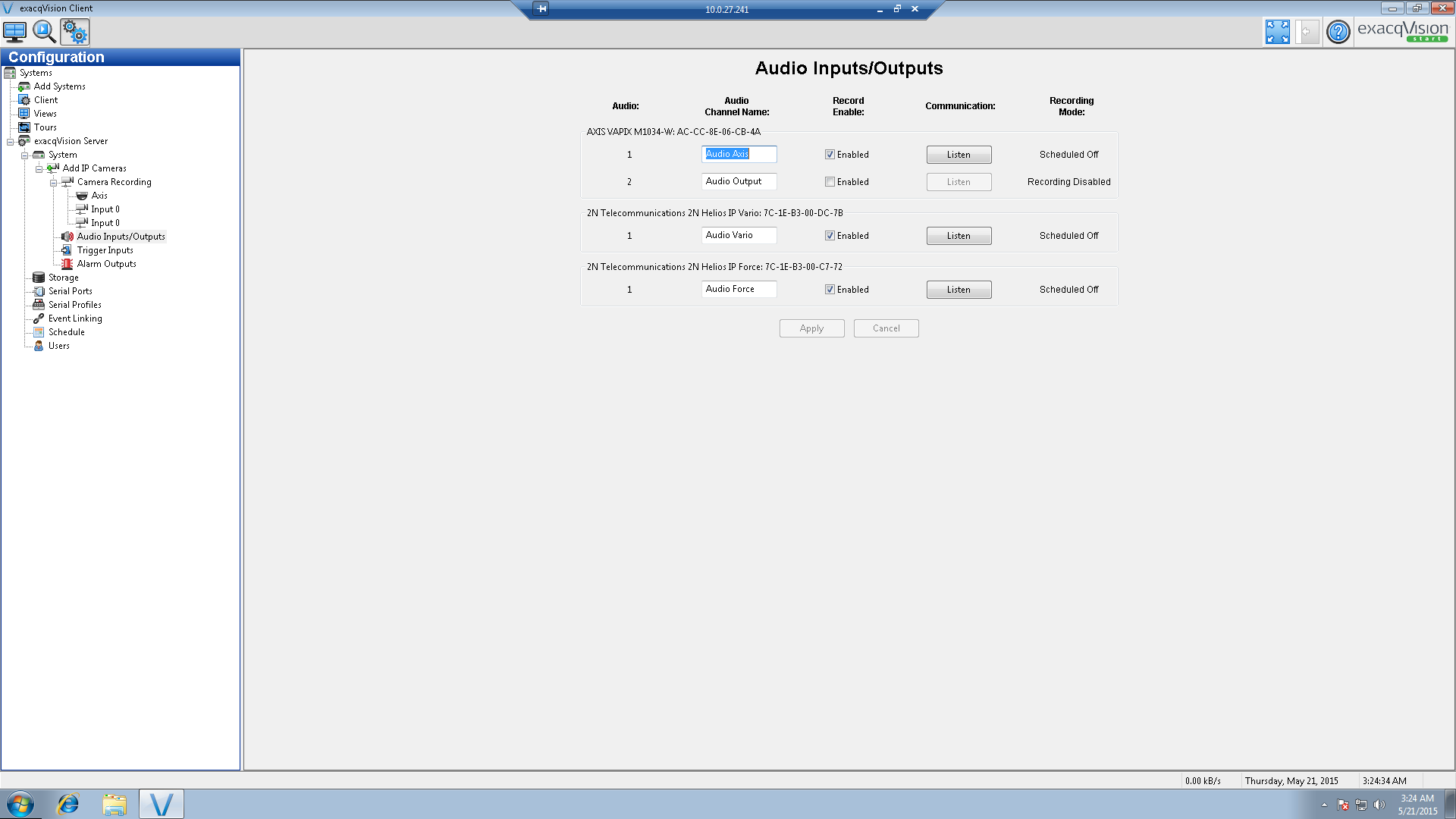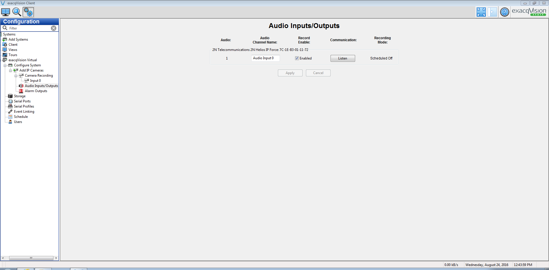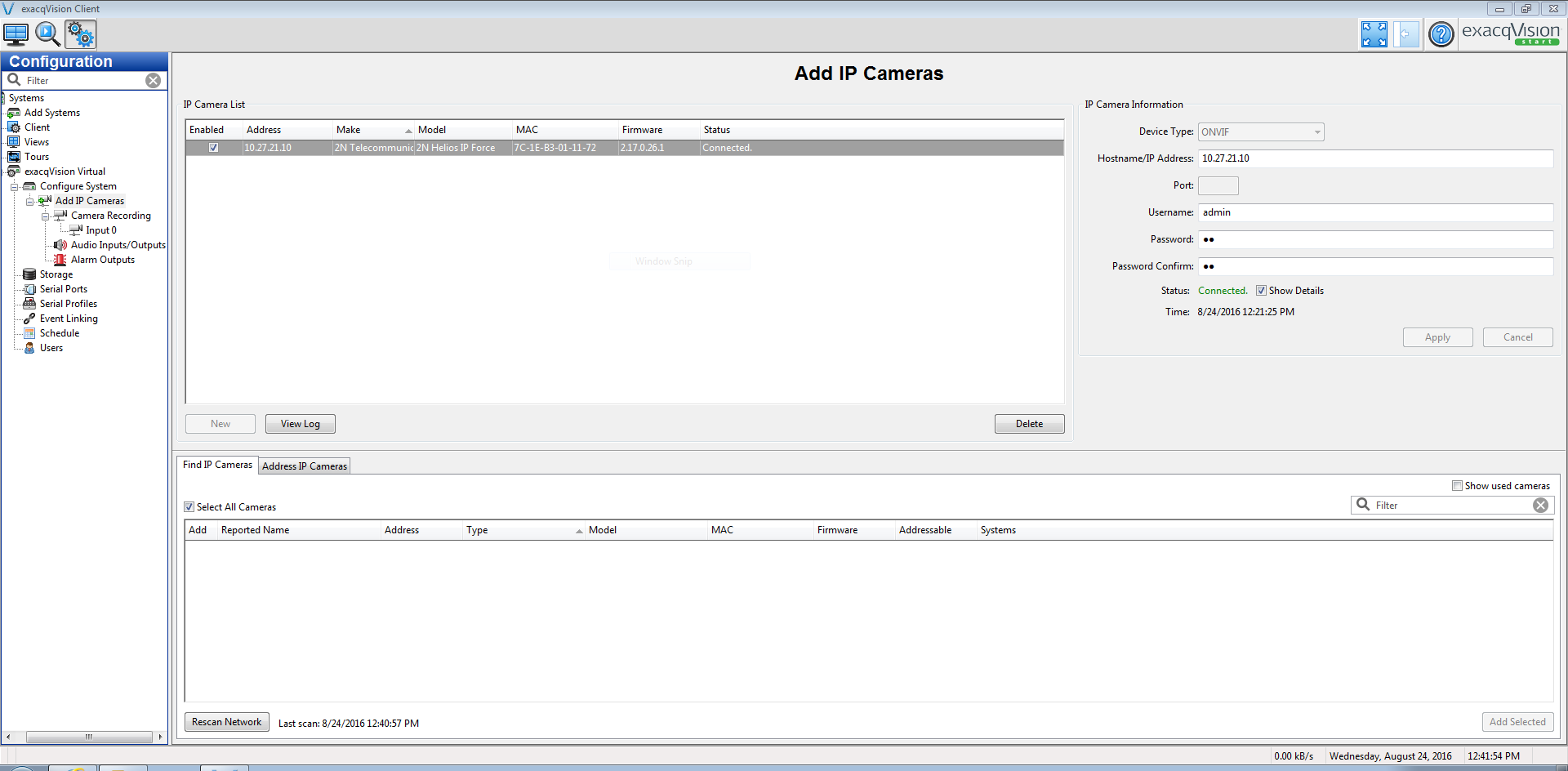 | exacqVision | 2N IP Intercom Version | Scan device | Video from 2N IP Intercom | Audio from 2N IP Intercom | Audio to 2N IP Intercom | Switch control | Events from 2N IP Intercom |