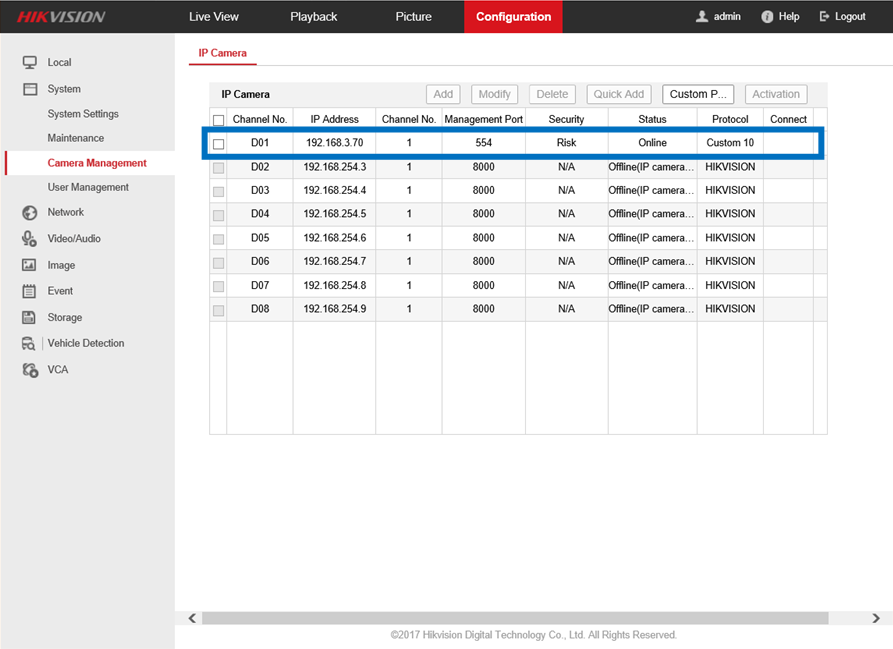 | Hikvision NVR DS-7608NI-E2/8P/A | 2N IP Intercom Version | Scan device | Video from 2N IP Intercom | Audio from 2N IP Intercom | Audio to 2N IP Intercom | Switch control | Events from 2N IP Intercom |