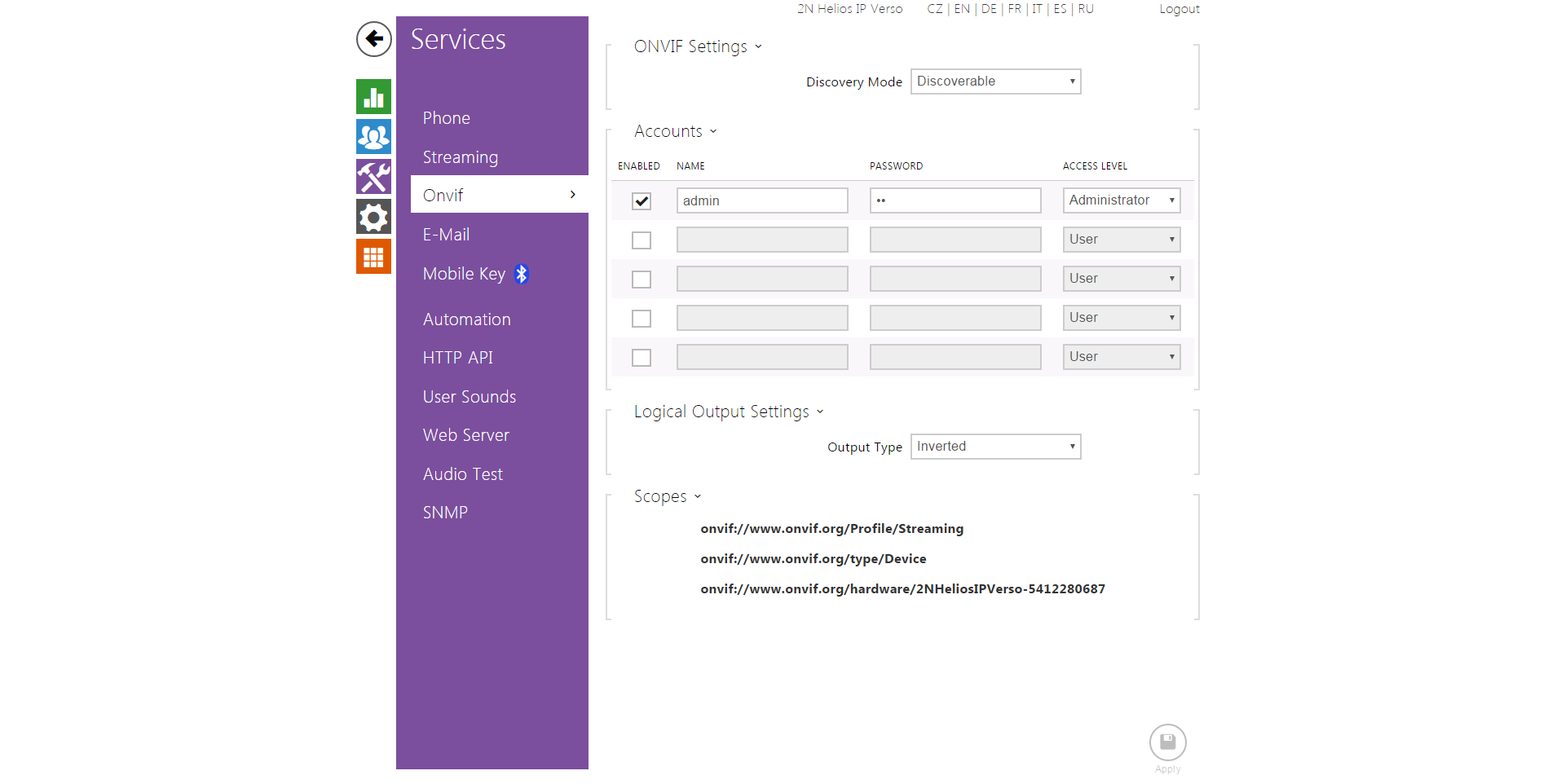 | ISS SecurOS | 2N IP Intercom Version | Scan device | Video from 2N IP Intercom | Audio from 2N IP Intercom | Audio to 2N IP Intercom | Switch control | Events from 2N IP Intercom |