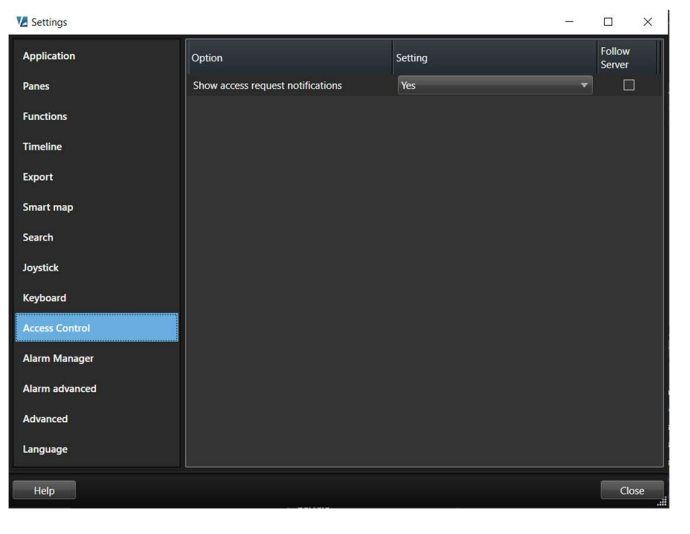 In Video Client settings panel, you can turn on or off Access request notifications or choose to use the configuration set in