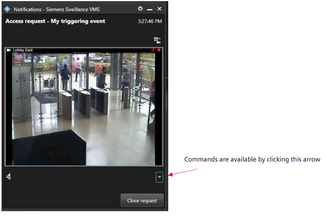 When the rule that you have created is triggered in Siveillance Video Event Server, then your Access request notification