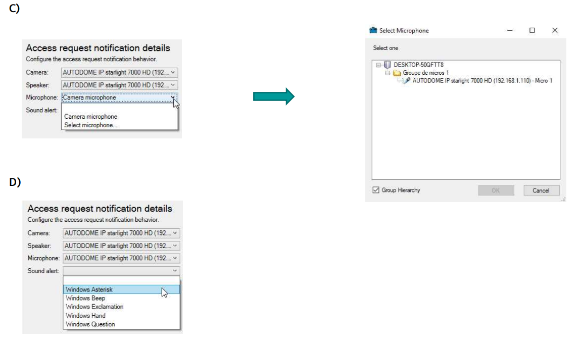 microphone, and (D) a sound alert (heard on the PC when the pop-up will be triggered)
