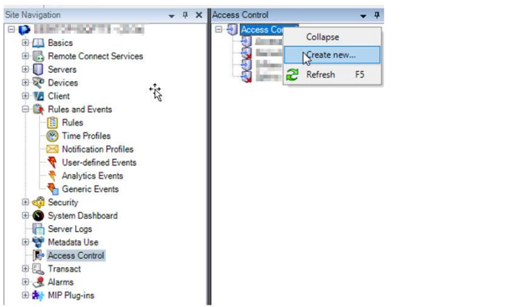 Management Client by right clicking the Access Control root node and click Create new