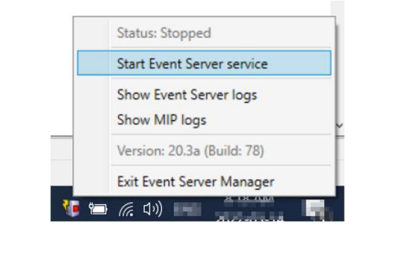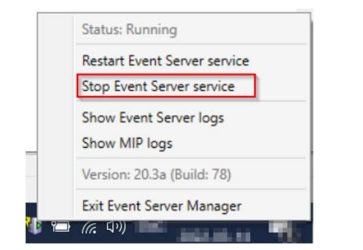 You can stop the Event Server service by right-clicking on its icon and select the stop command: