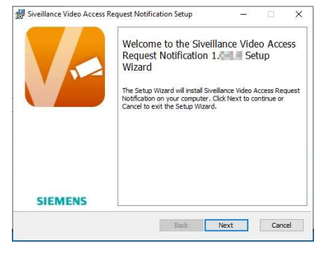 2. Run the Siveillance.Video.Access.RequestNotification.Install.msi from the folder you have extracted